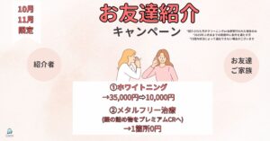 今回は以前のキャンペーンで大好評だった「メタルフリー治療が0円」企画も復活!