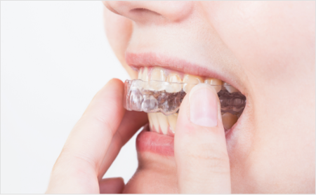 マウスピースは装着したまま固い物を噛んでしまうと破損してしまうことがあるため、丁寧に扱ってください。色の濃い食べ物も着色してしまう場合がありますので注意しましょう。
